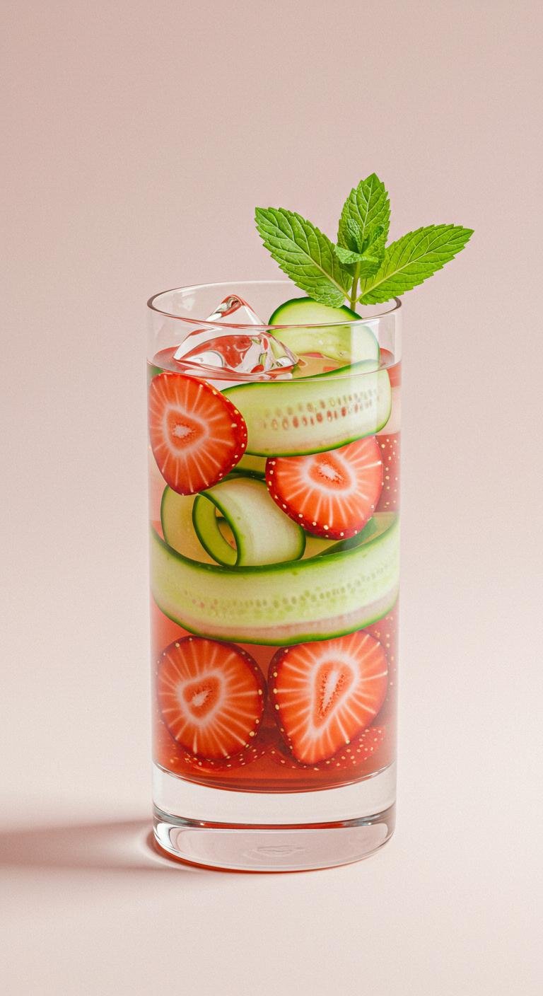 - Layer strawberries and cucumber in a glass over ice.