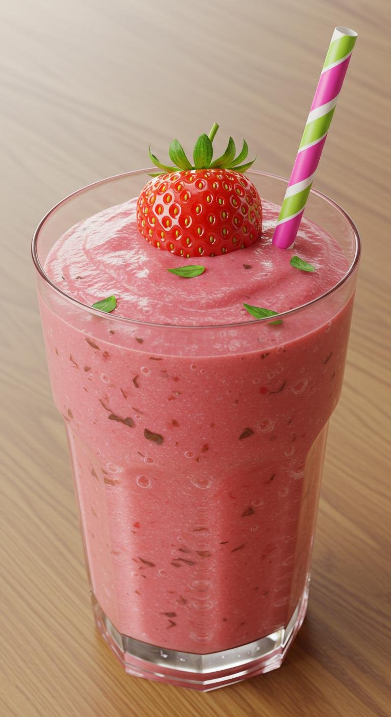 - Blend strawberries, banana, ice cream, and milk until smooth.