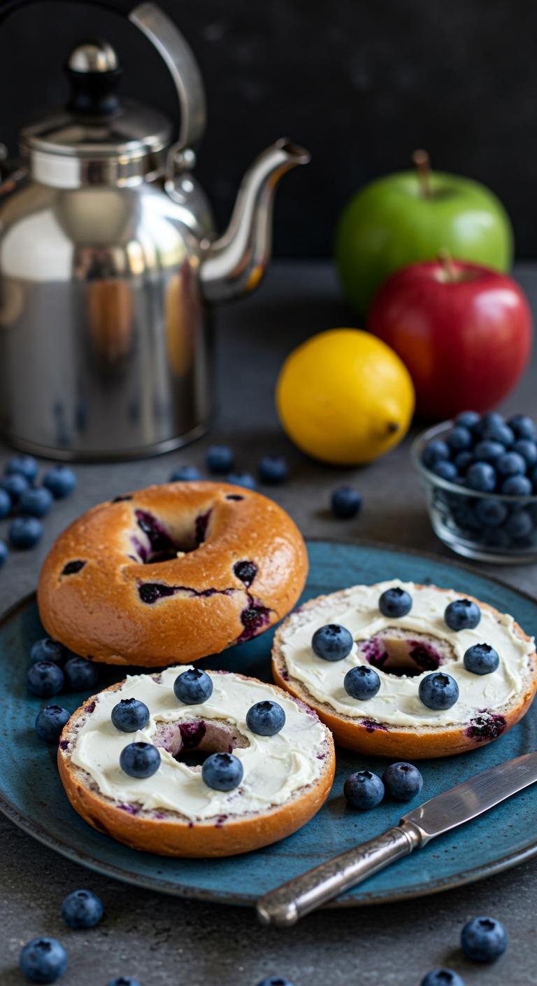 - Fold in blueberries, let rise. Shape into bagels and boil for 1 minute on each side.