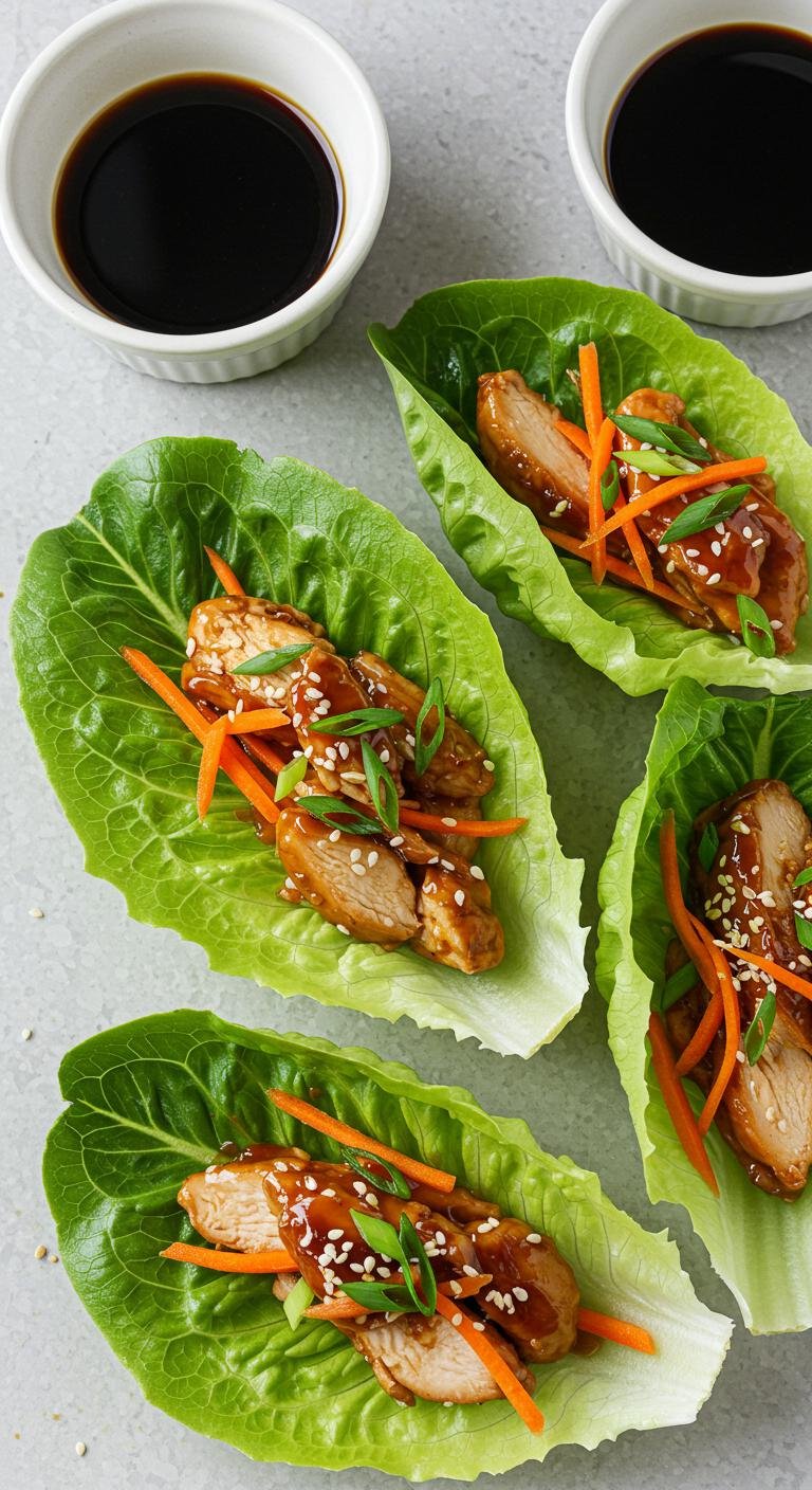 - Spoon mixture into lettuce leaves and top with carrots and scallions.