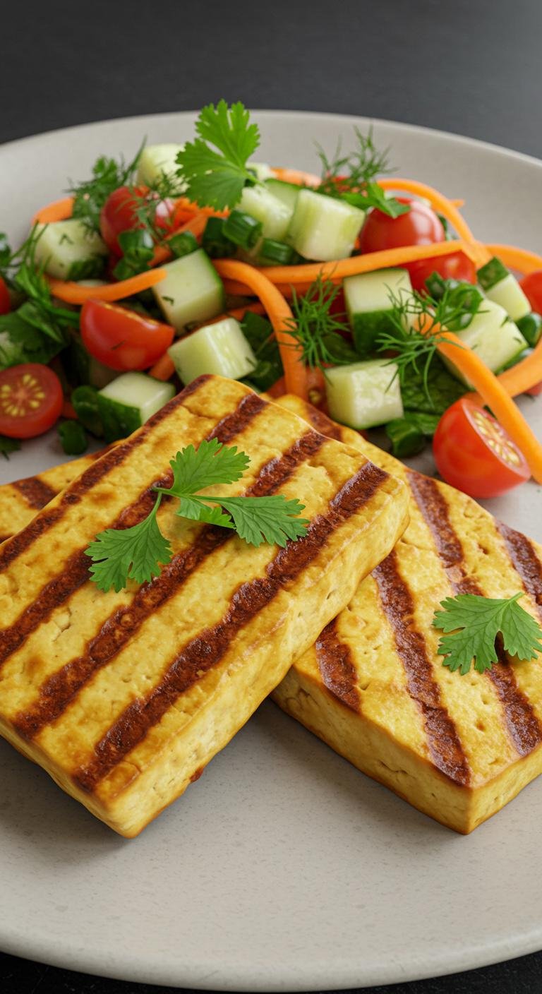 - Press tofu to remove moisture; marinate in soy sauce, sesame oil, and garlic for 30 minutes.