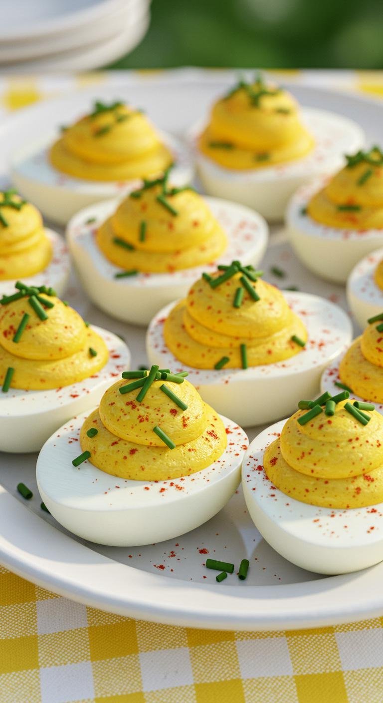 - Scoop the yolks into a bowl and mix with mayonnaise, mustard, and vinegar.