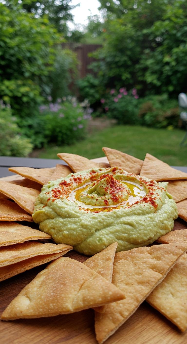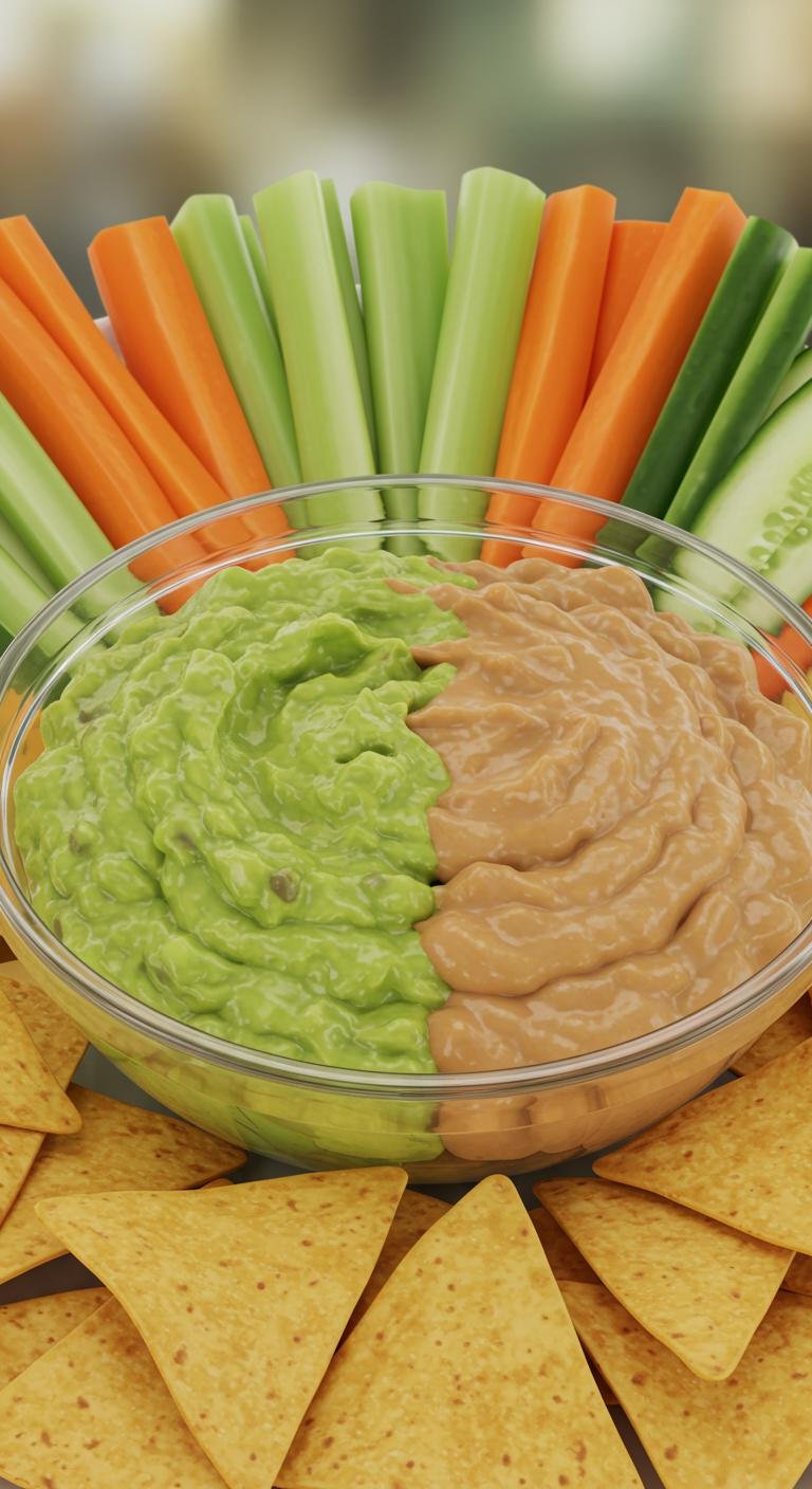 This creative recipe combines hummus and guacamole for a creamy, flavorful dip.