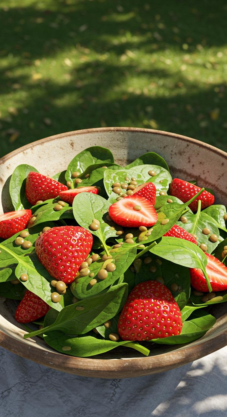 - In a bowl, combine lentils, spinach, strawberries, and cheese.