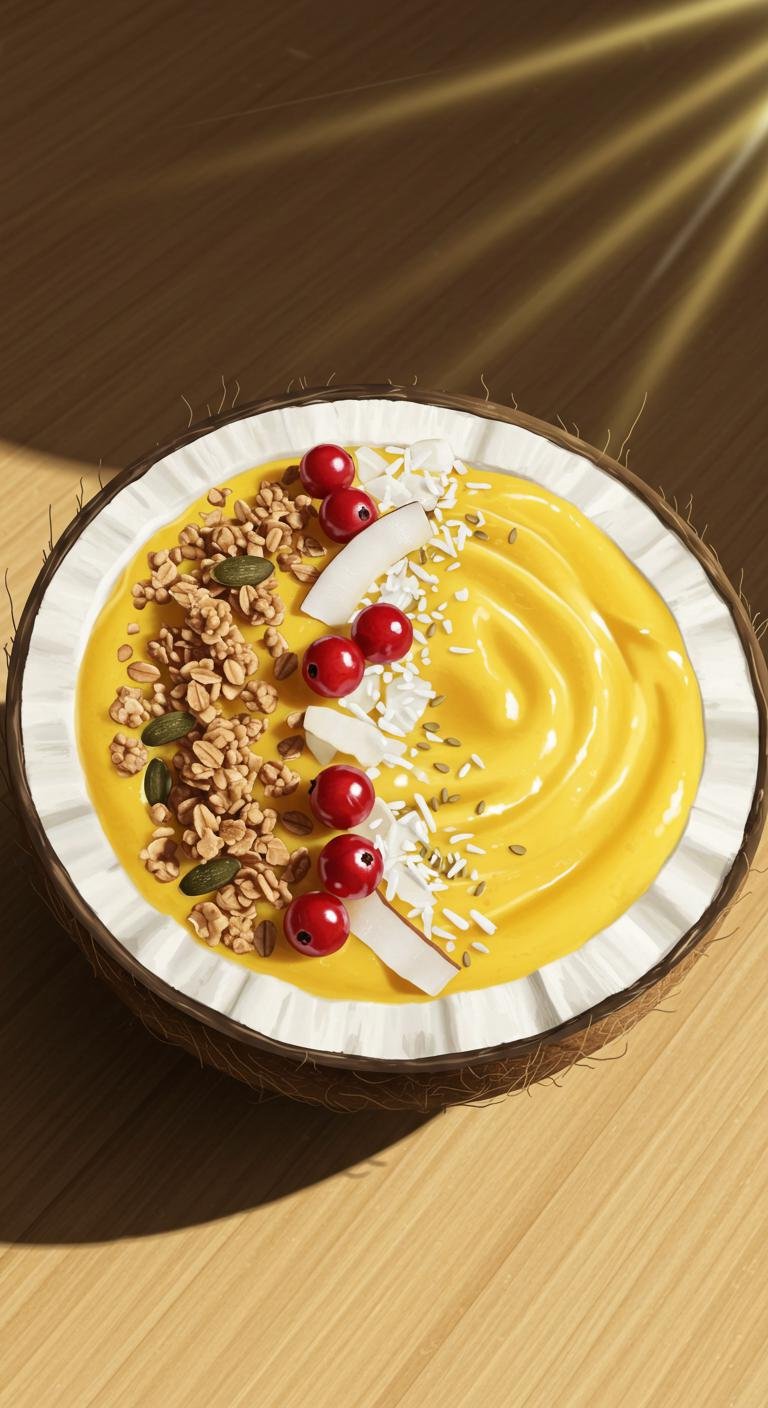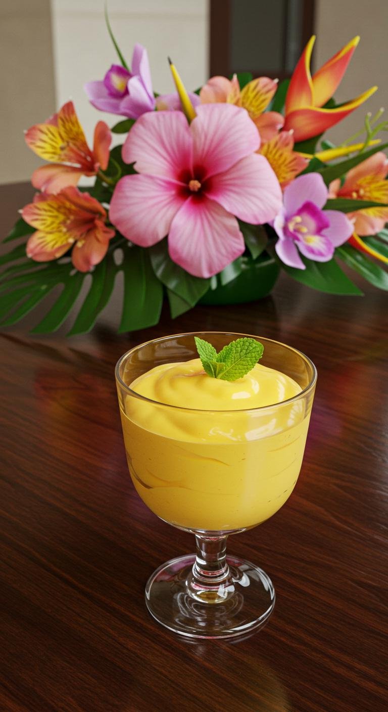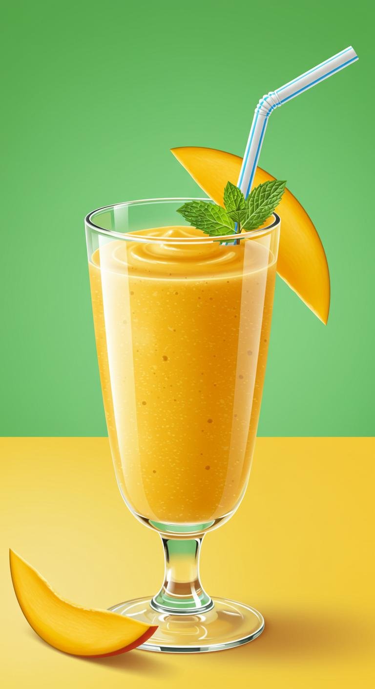- Blend together mango, banana, coconut milk, and honey until smooth.