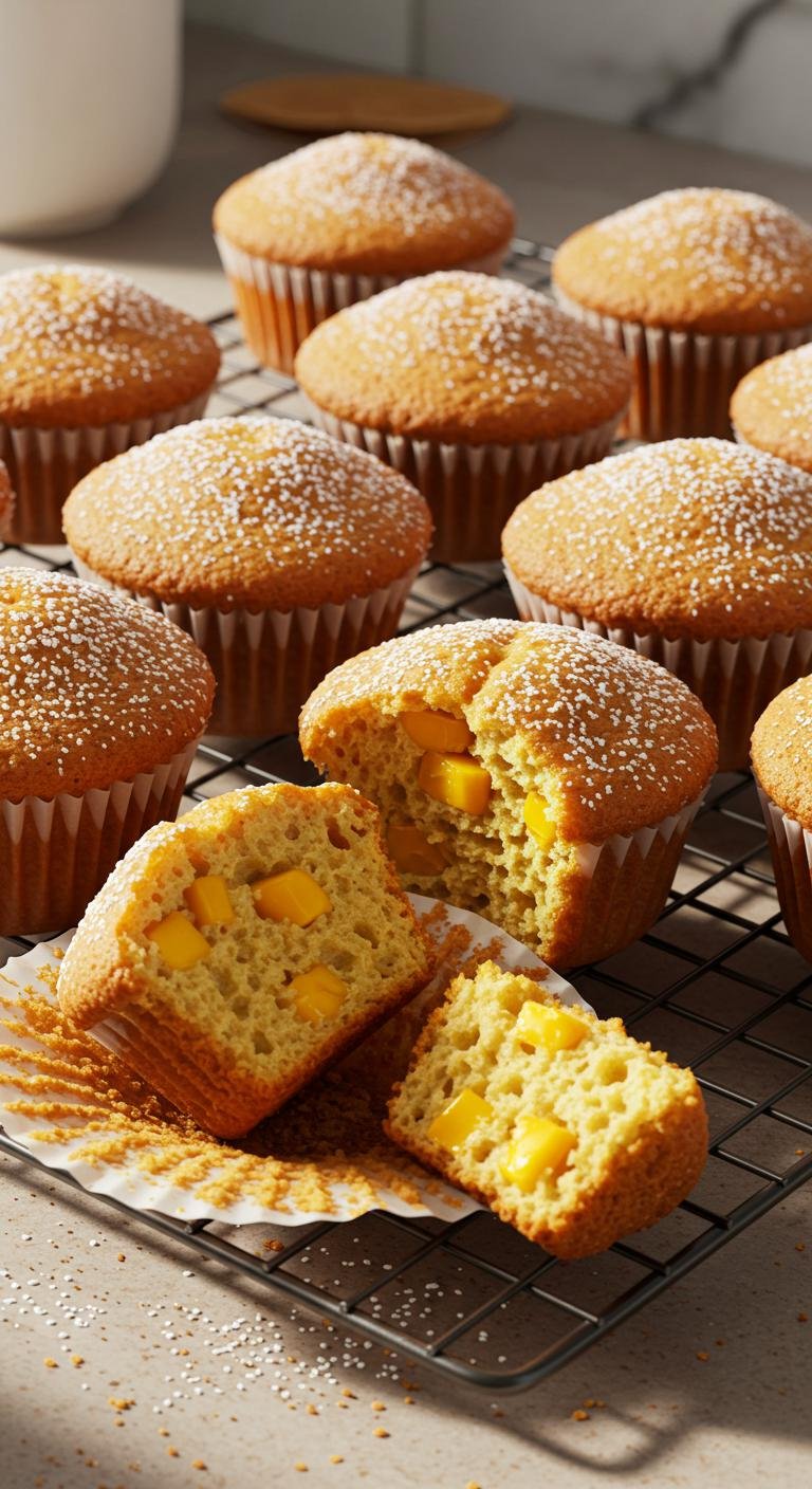 - Fold in the mango and pour the mixture into muffin liners. Bake for 25 minutes.