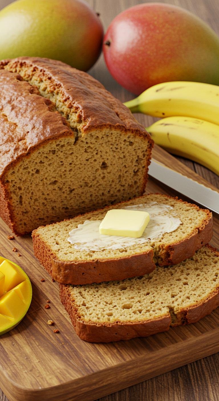 - Mix mashed bananas, mango puree, and sugar in a bowl.