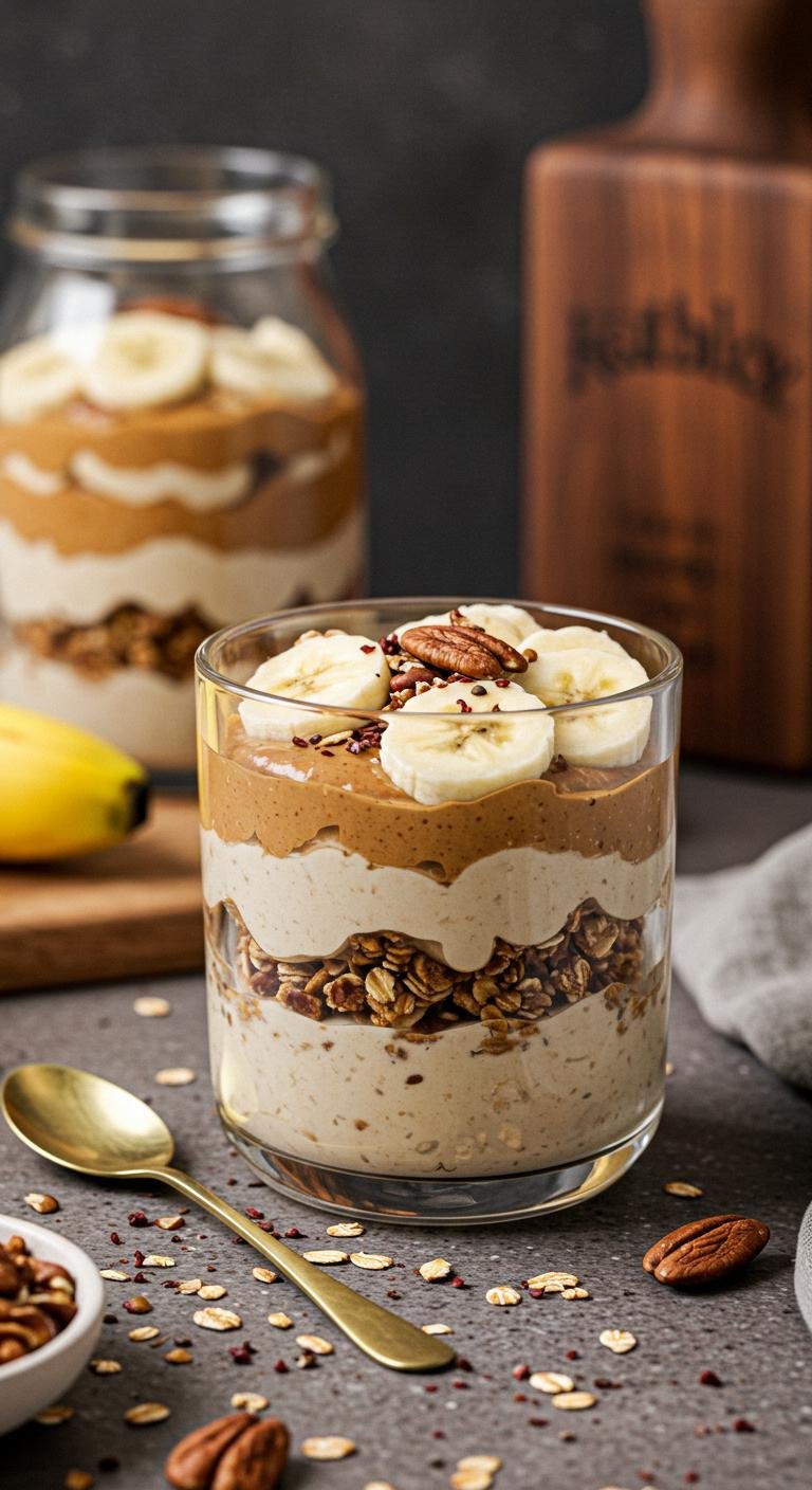 - Layer Greek yogurt, nut butter, and bananas in a glass.