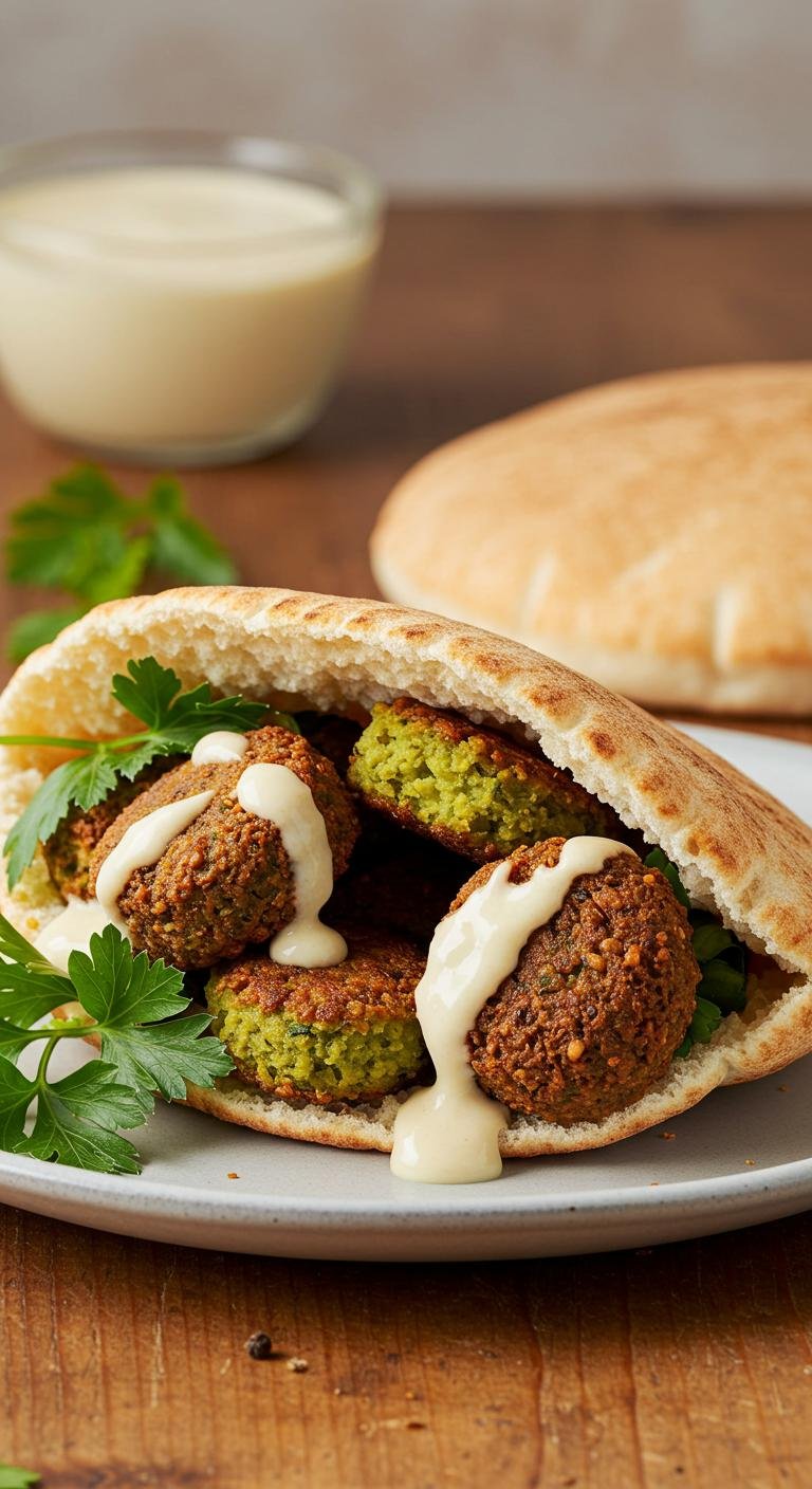 - Fill pita pockets with warm falafel, lettuce, and tahini sauce.