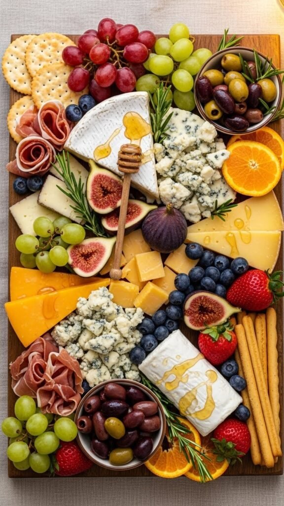 Savor the sweetness of summer fruits paired with creamy cheeses.