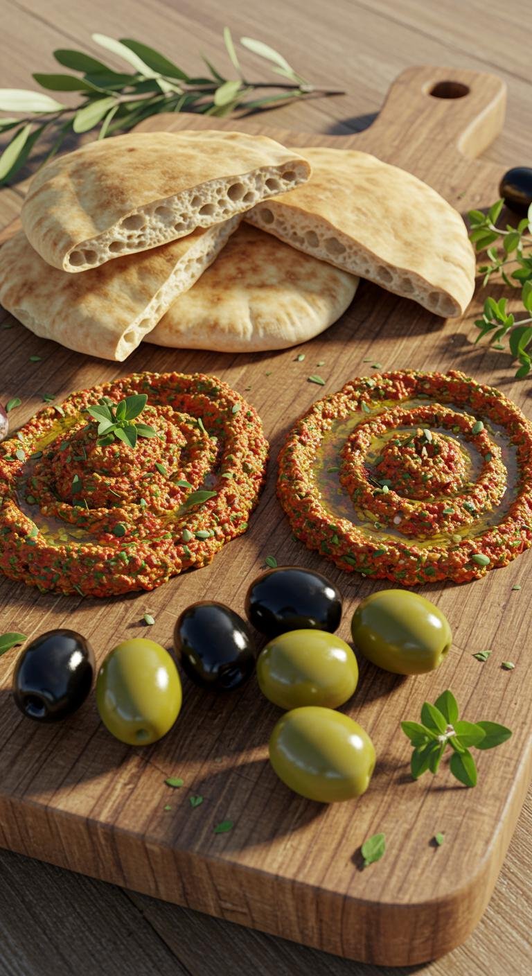 - 1 cup assorted tapenade (olive, sun-dried tomato)