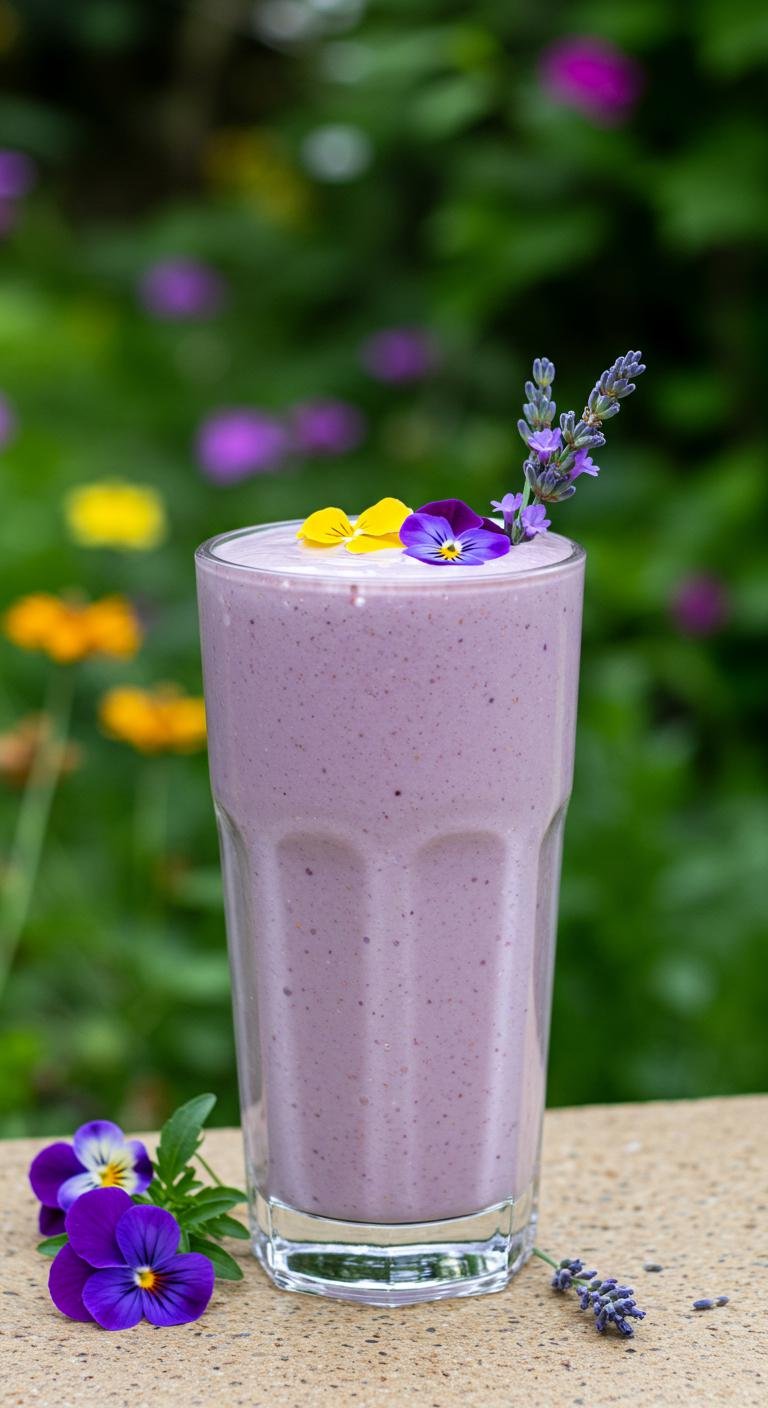 - Blend almond milk, protein powder, lavender, and ice until smooth.