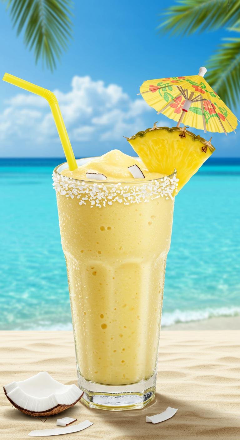 - Blend pineapple, coconut milk, protein powder, and ice until creamy.