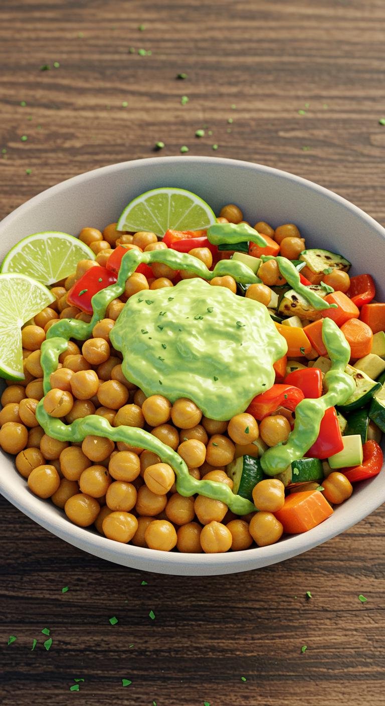- Toss chickpeas, bell pepper, and corn with the avocado dressing.
