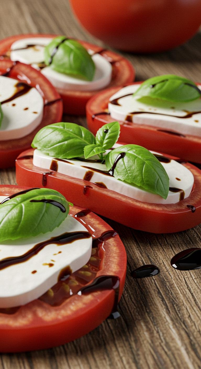 - Layer tomatoes, mozzarella, and basil on a platter.