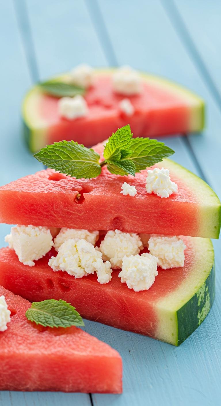 - Sandwich feta between two watermelon slices.