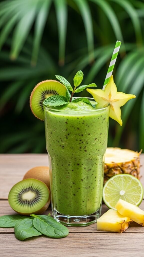 - Blend spinach, lime juice, pineapple, and coconut water until smooth.