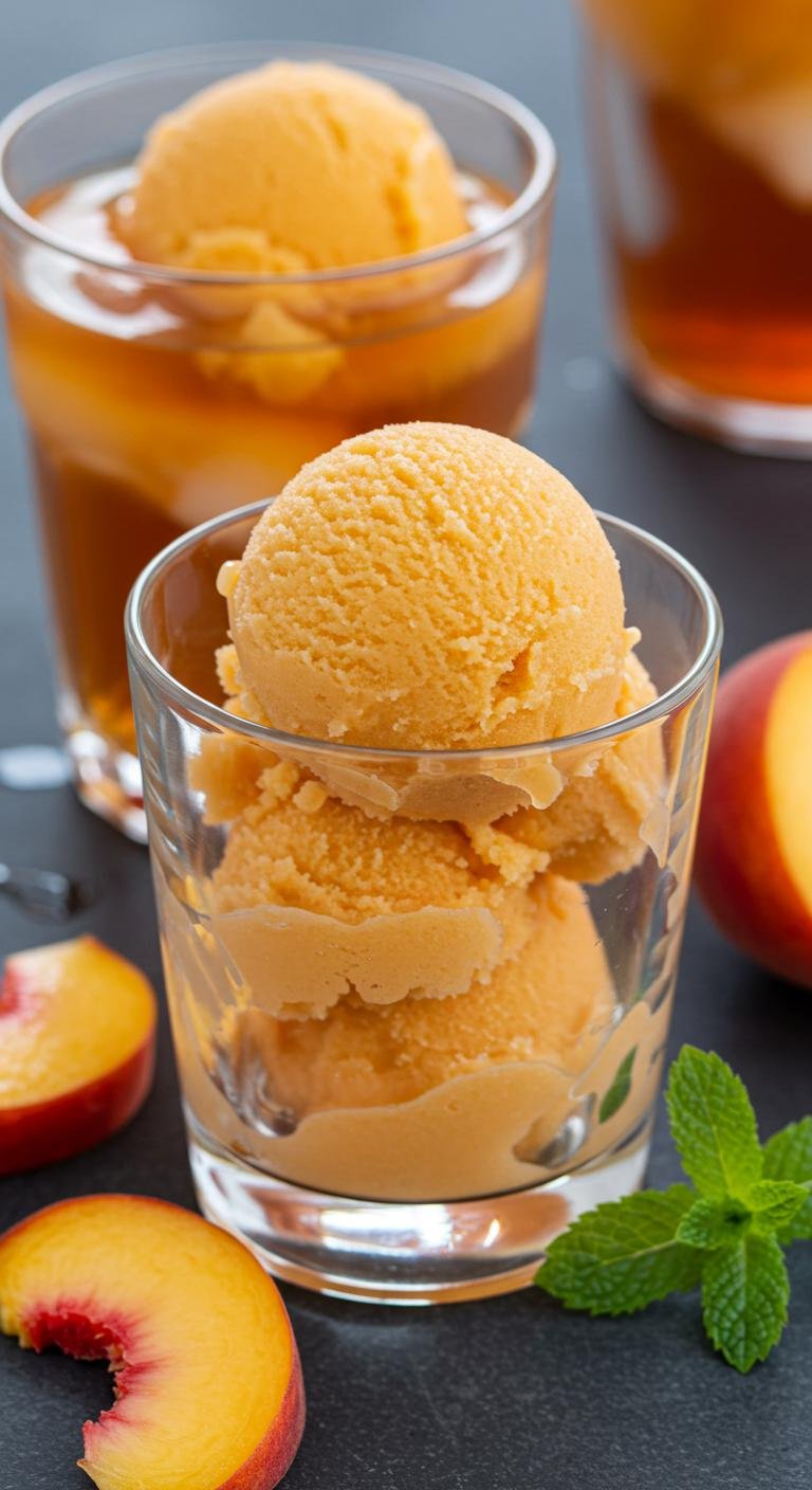 - Mix peach nectar, iced tea, sugar, and lemon juice in a bowl.