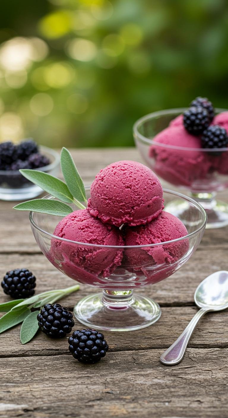 - Cook blackberries, sage, sugar, and lemon juice until soft.