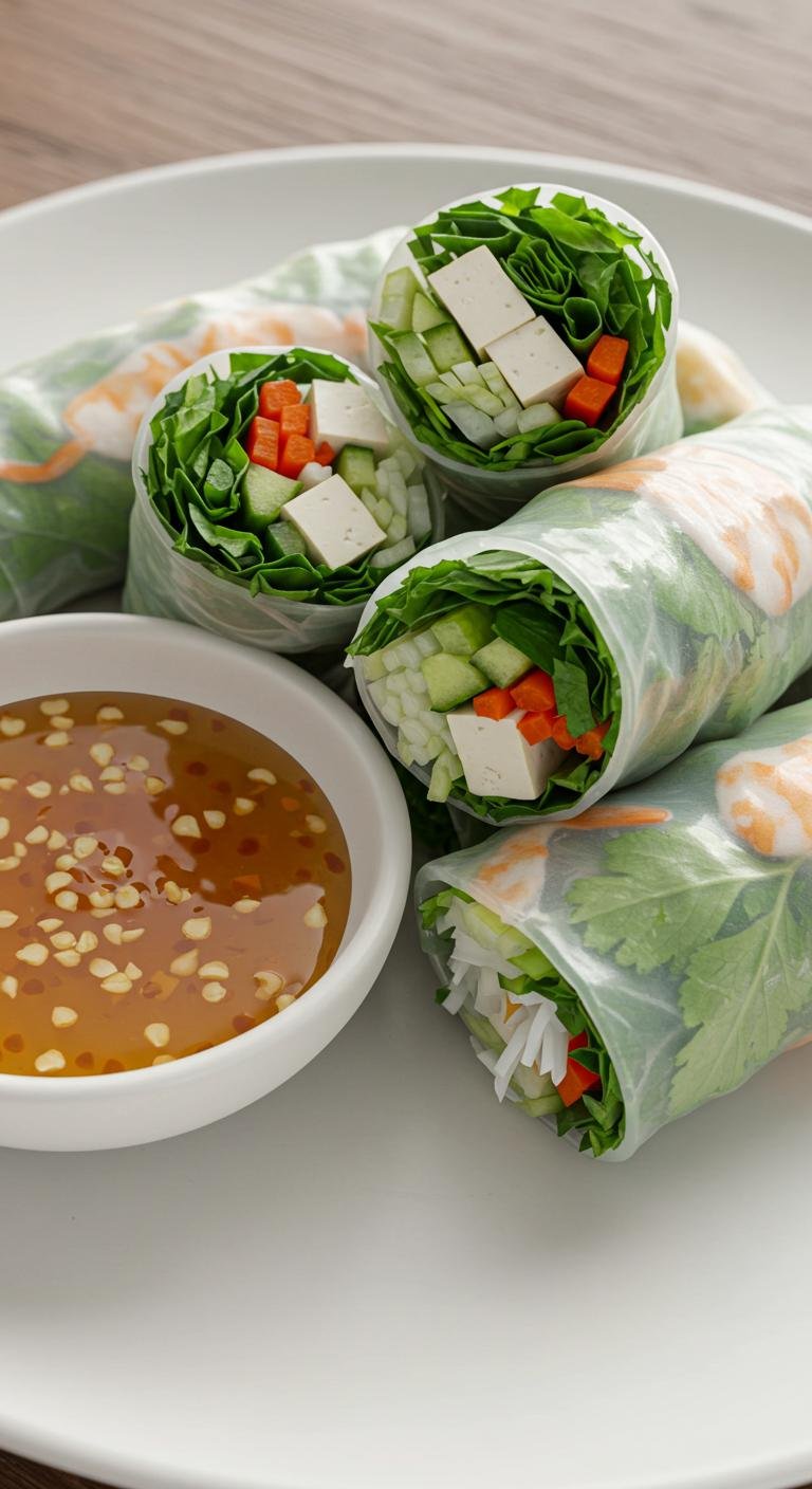 - Slice tofu and veggies; layer them in the center of the wrapper.