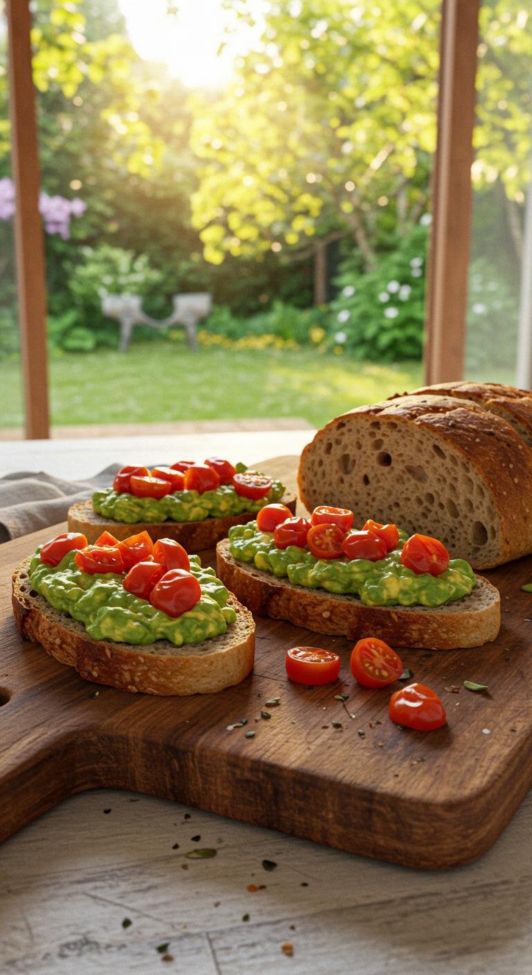 - Mash avocado and spread on the toast, topped with diced tomatoes and seasoning.