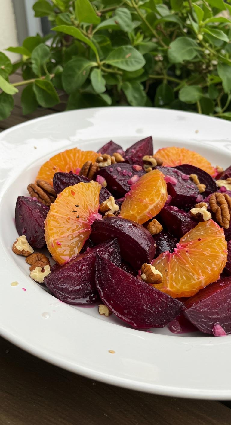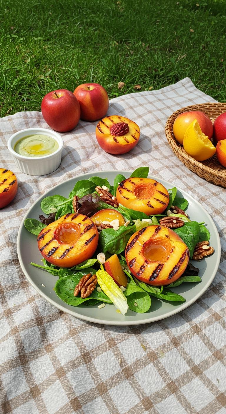- Arrange on greens, sprinkle with nuts, and drizzle with balsamic glaze.
