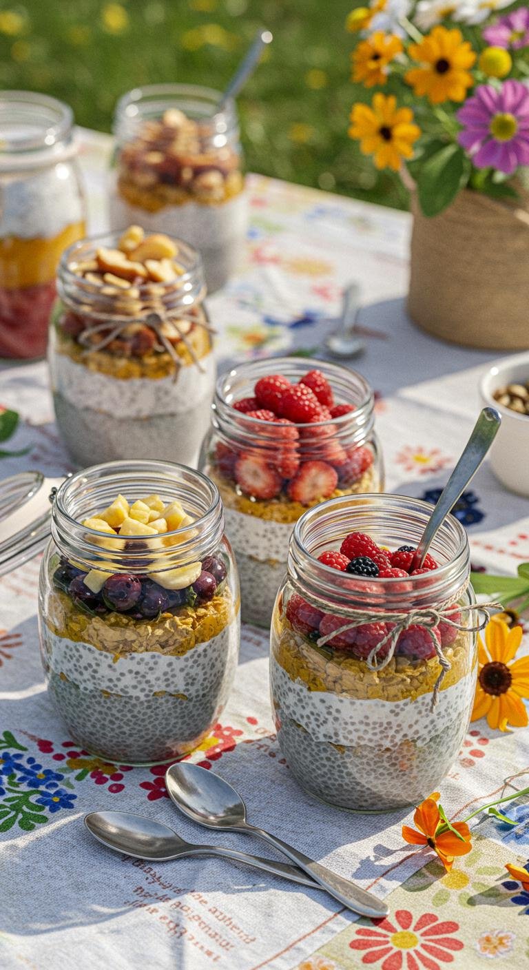 - Mix chia seeds, coconut milk, and maple syrup in a bowl.