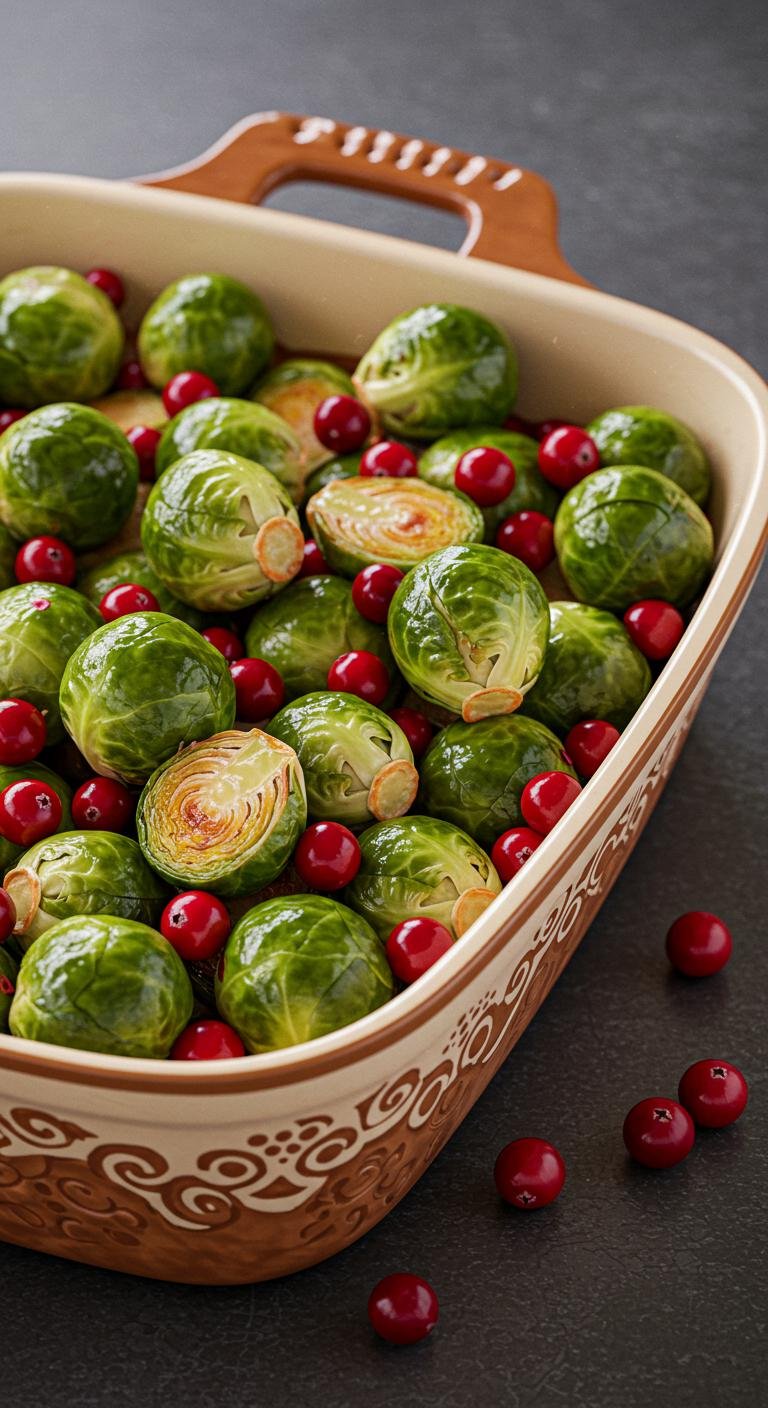 - Preheat oven to 375°F (190°C). Toss Brussels sprouts with cranberries and pecans.