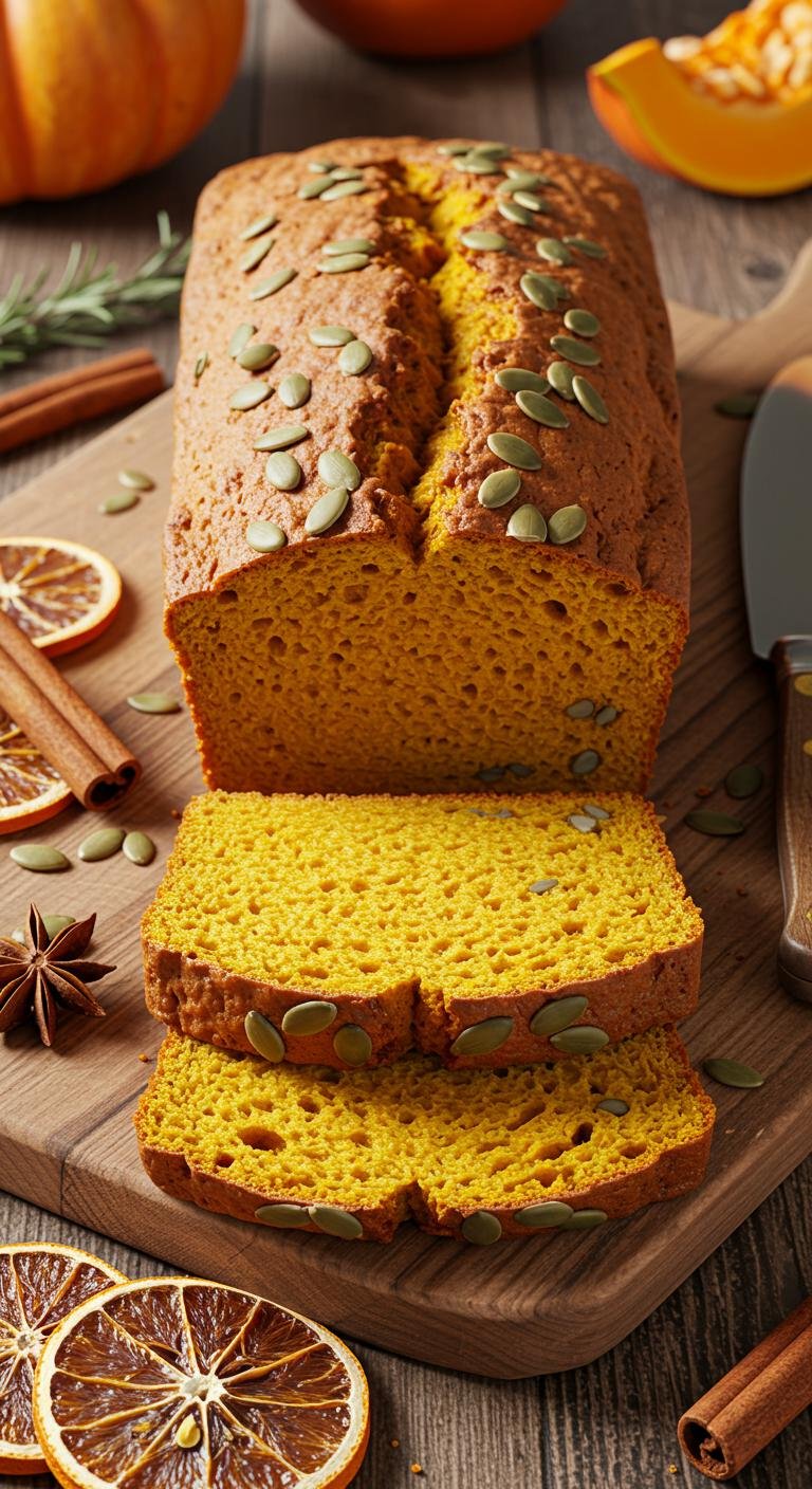 Sweet and aromatic, pumpkin bread is autumn on a plate.
