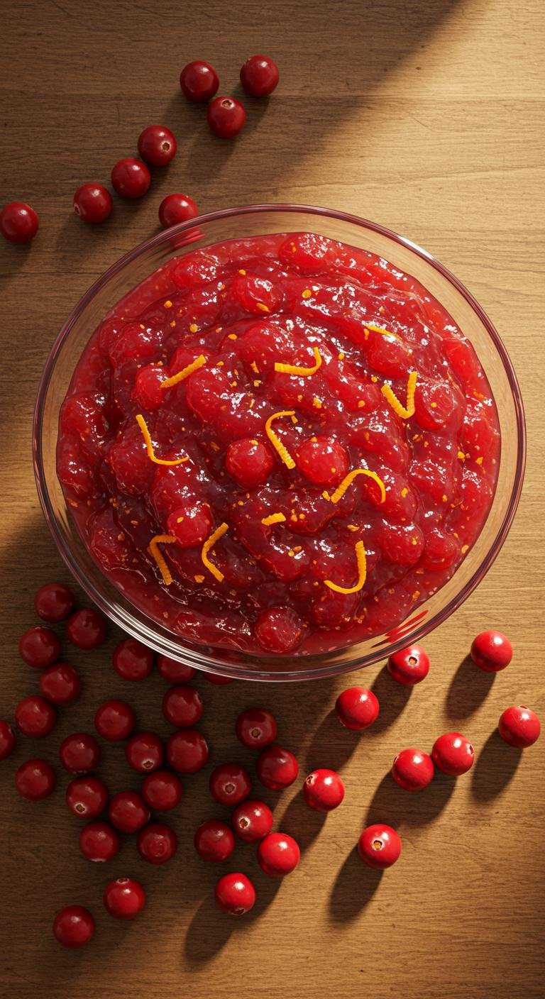 - In a pot, combine cranberries, sugar, and water; boil until cranberries burst.