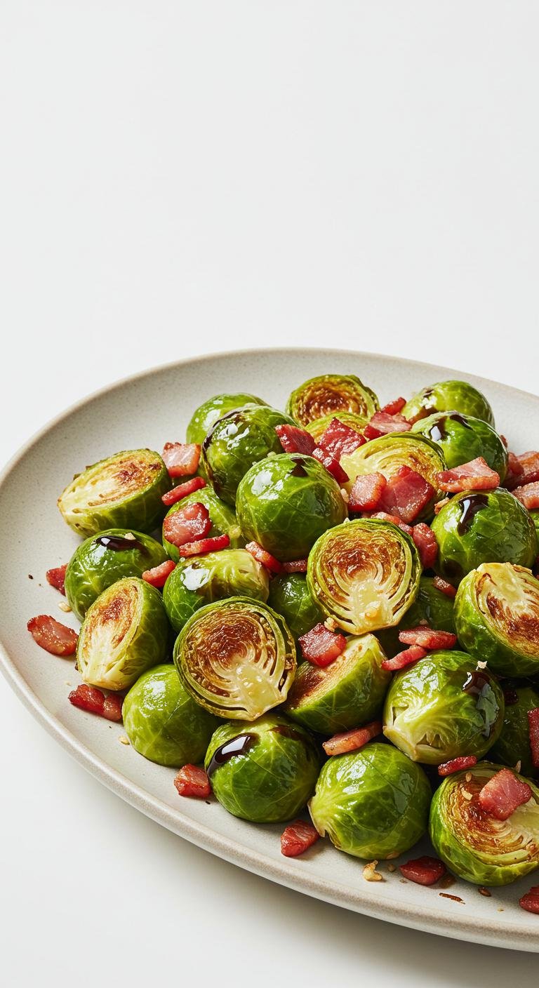 - Toss Brussels sprouts with bacon, olive oil, salt, and pepper.