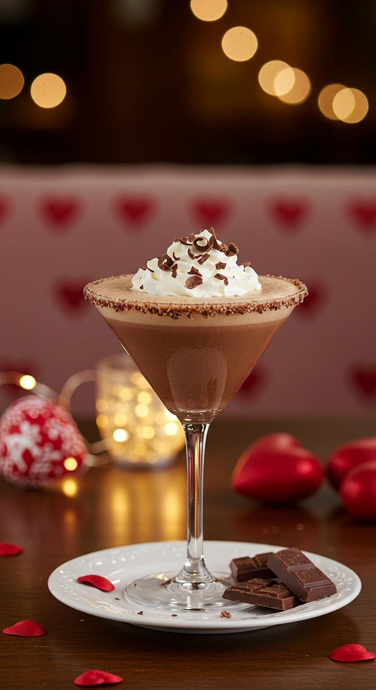 - Mix hot chocolate, vodka, and chocolate liqueur in a shaker.