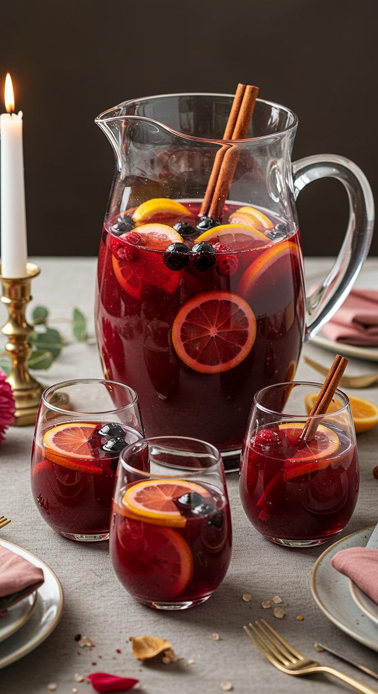 - Combine wine, berries, orange juice, and cinnamon in a pitcher; chill for one hour.