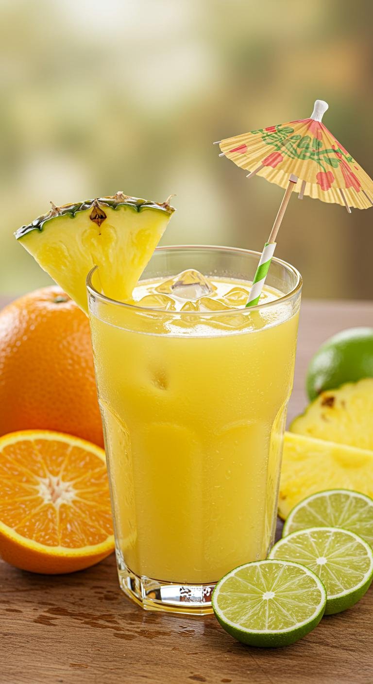 - Mix pineapple juice, coconut water, and lime juice in a shaker.