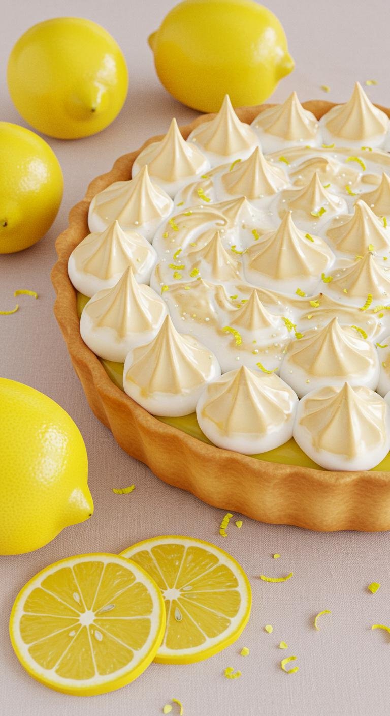 - Pour filling into crust and cover with beaten egg whites. Bake for 10 minutes until golden.