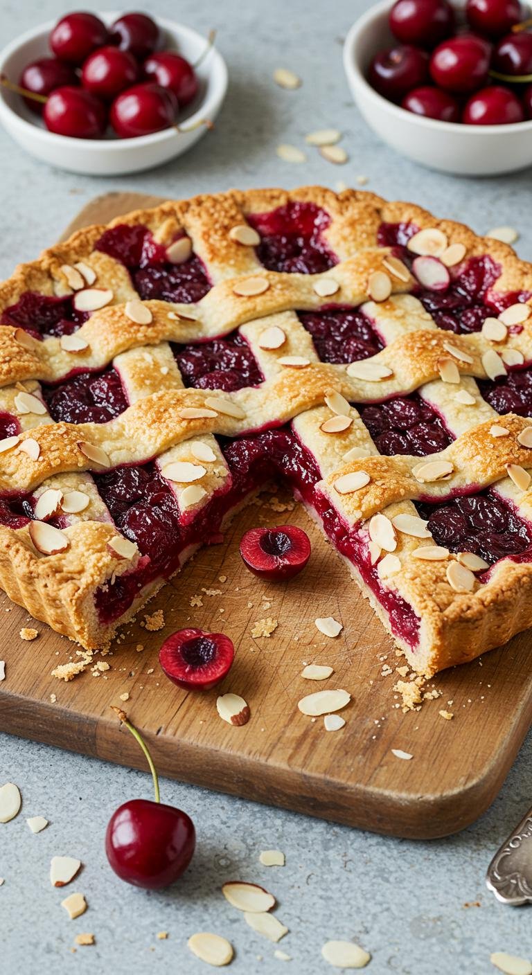- Mix cherries, sugar, almond flour, and cornstarch. Fill the bottom crust and top with the second crust.