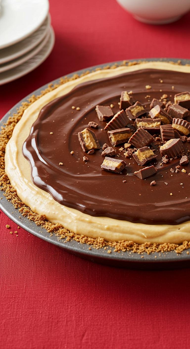 - Blend peanut butter, cream cheese, and powdered sugar until smooth. Fold in whipped topping and pour into the crust.