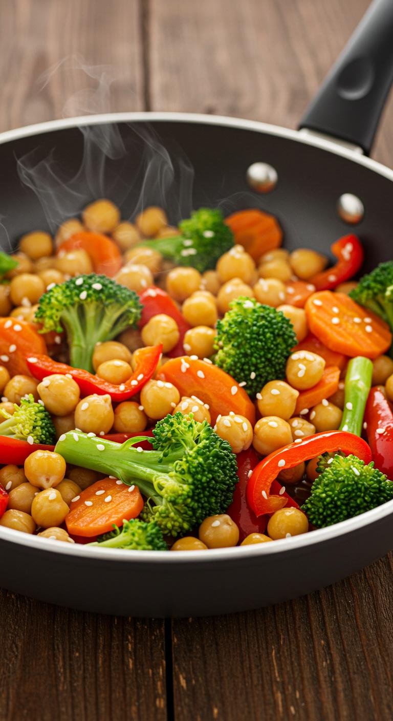 - Add chickpeas and soy sauce, cooking for another 3 minutes.