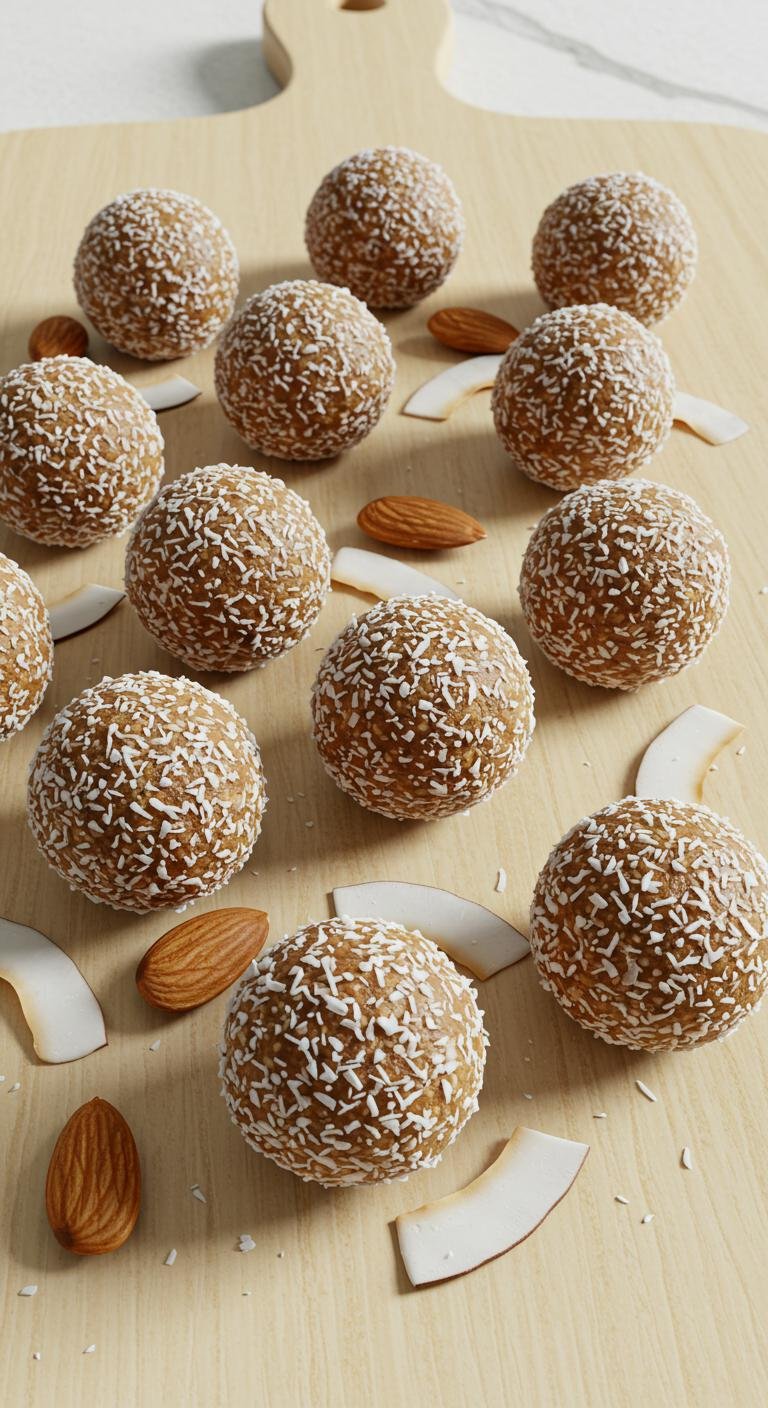 - Shape into balls and roll in extra coconut.